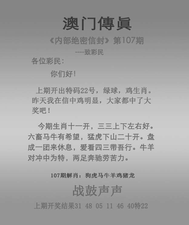 101期: ★复式3肖★ 【兔马猪鸡狗】 开2个准
