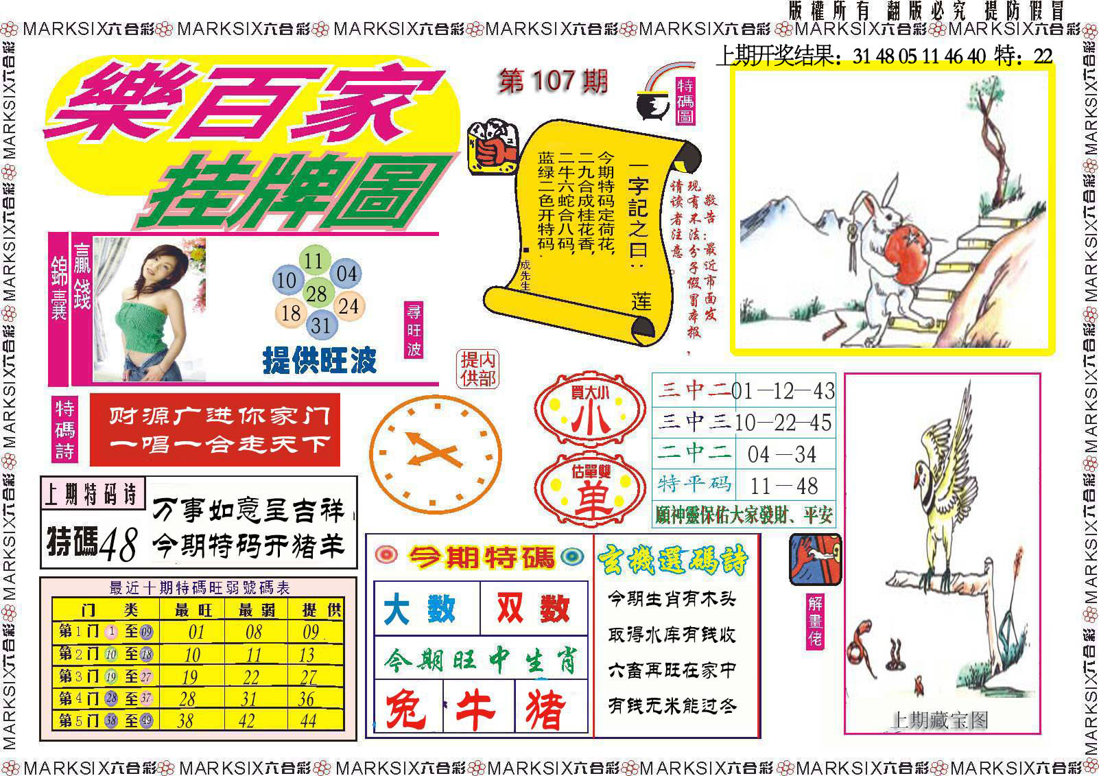 107期: ★平特1肖★ 【兔兔兔】 开 ?? 准